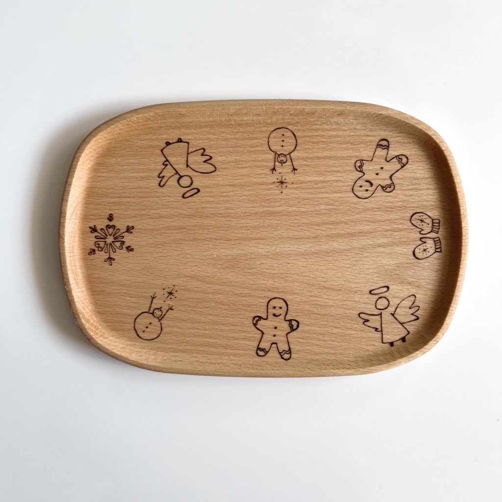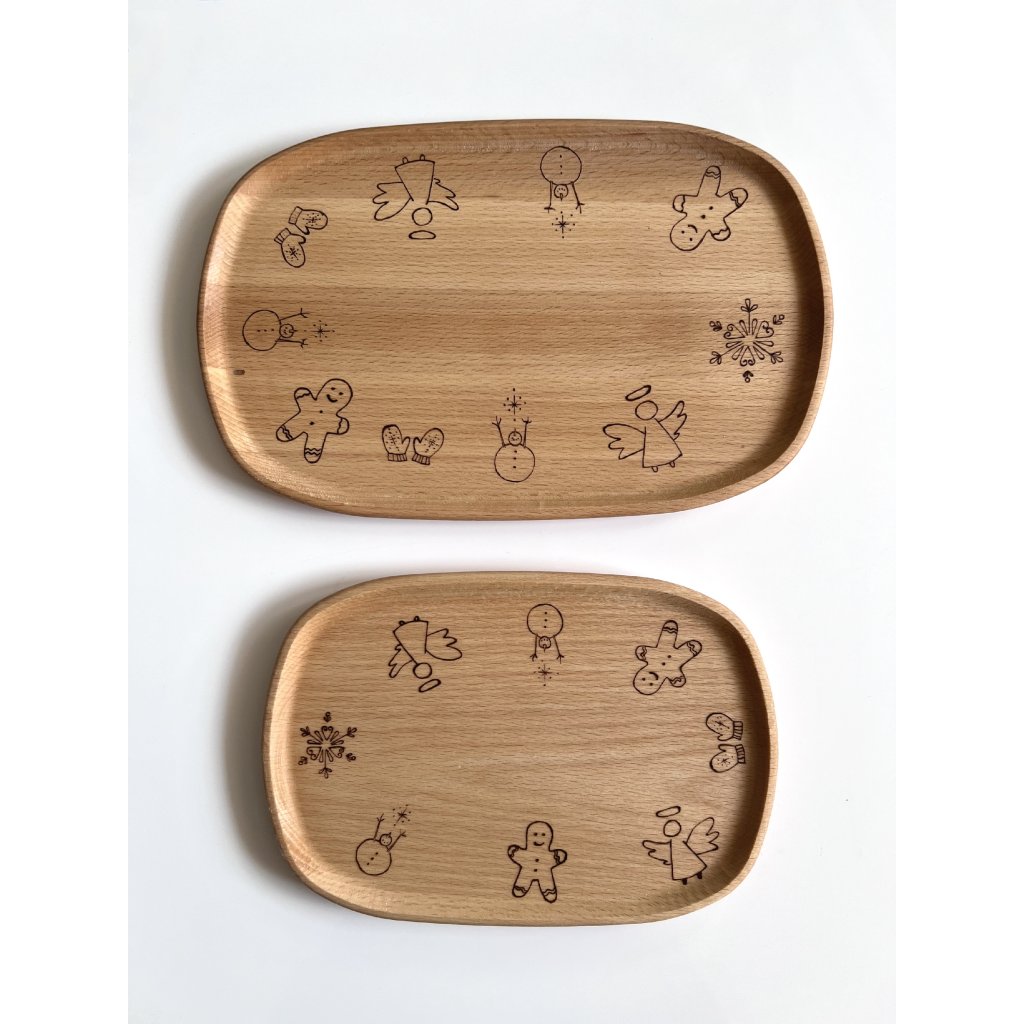 Dřevěný tác na vánoční perníčky. Oválný tác máme ve dvou velikostech, aby pasoval přímo na Váš vánoční stůl.